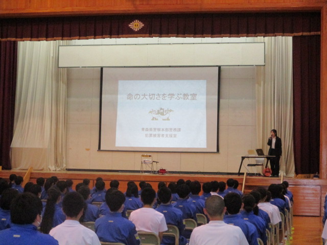 青森県警察では、犯罪や交通事故を減少させ、県民が安全で安心して暮らせる青森県を実現するために、民間被害者支援団体などの関係機関・団体と連携しながら、 中学生・高校生を対象とした「命の大切さを学ぶ教室」を開催するなど、様々な機会を通じて犯罪被害の実態や犯罪被害者支援の重要性などに関する広報啓発活動を行っています。