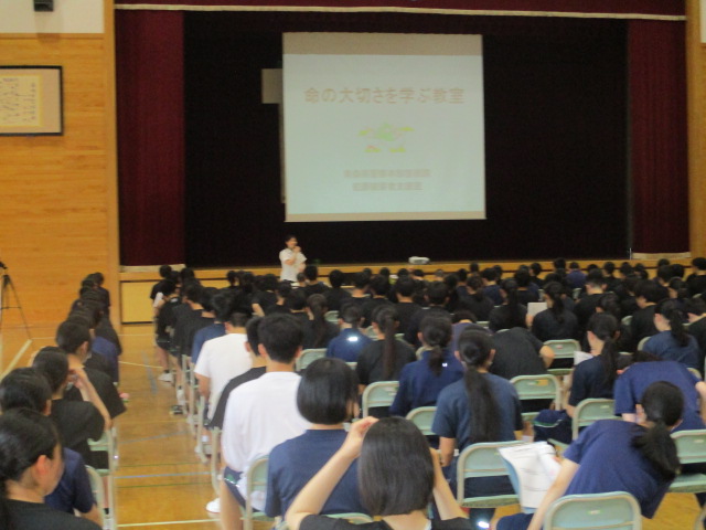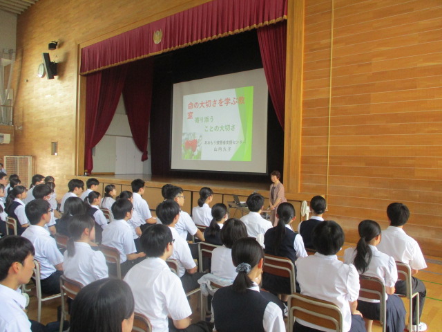 中学校では、幸せな四人家族を突然襲った傷害致死事件をモデルとしたDVDを鑑賞してもらい、犯罪被害者支援室員が講話を行いました。