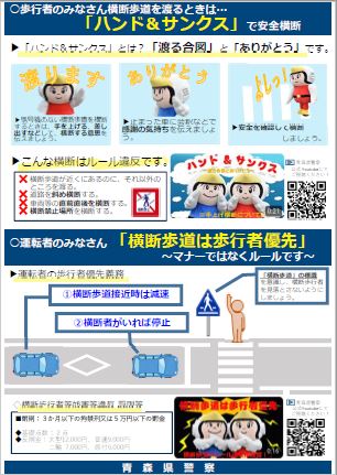 青森警察では広報啓発活動と交通指導取締りを強化しておりますので、交通ルールを守り安全運転、安全横断を心がけましょう。