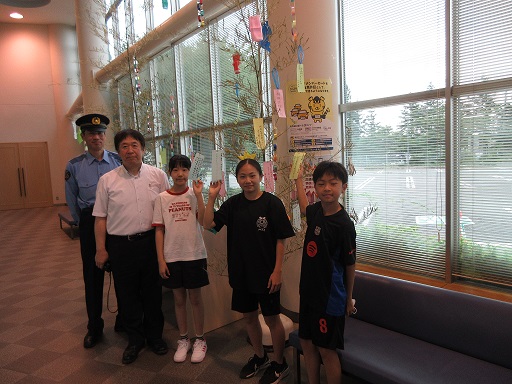 若葉小学校6年生が七夕の短冊に願いを書き、犯罪や事故の防止を願った。