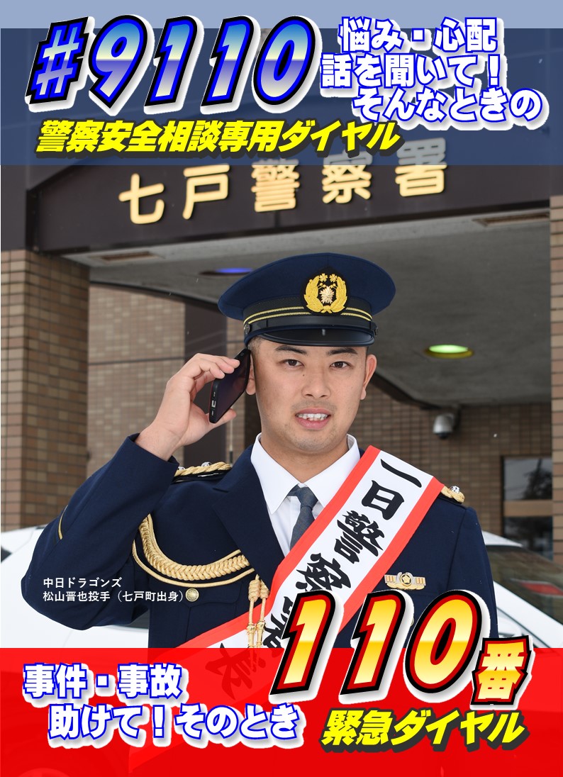 また、松山署長を起用した「110番通報や警察安全相談専用ダイヤル」、「特殊詐欺被害防止」、「自転車乗車時のヘルメット着用」、「青森県警察官募集」を呼びかけるポスターを作成したことから、今後、各種広報活動の際に活用していきたいと考えています。